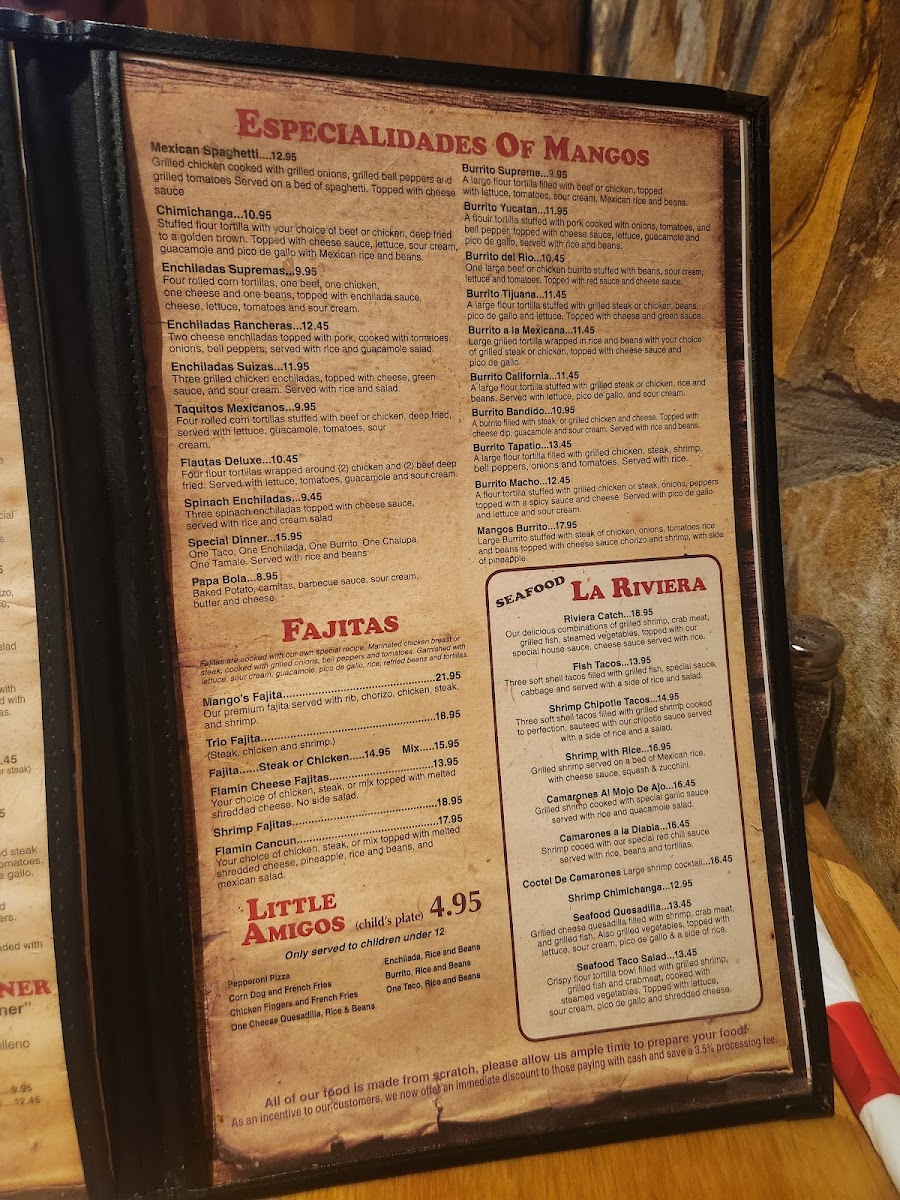 Feedback from patrons highlights the top-notch service, with servers like Louise earning rave reviews for their personal touch. The affordable prices paired with quality food make Mangos a beloved choice among locals. Whether it's a casual night out or a special occasion, Mangos Cantina and Grill promises a memorable dining adventure.
