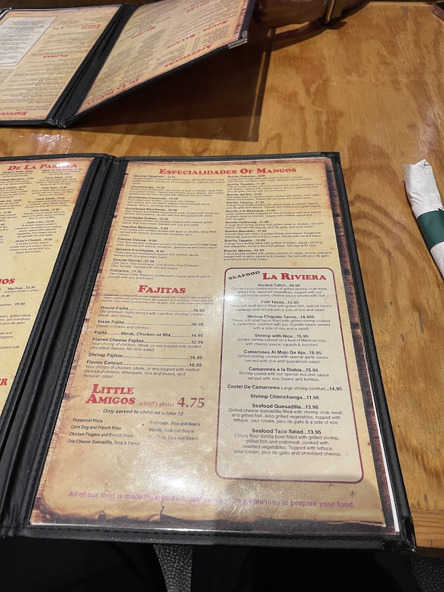 Start your meal with appetizing quesadillas, nachos, or vegetarian options before indulging in the show-stopping fajitas and enticing Little Amigos. Lunch specials and a la carte options ensure a varied dining experience, making it an ideal spot for both solo diners and families.